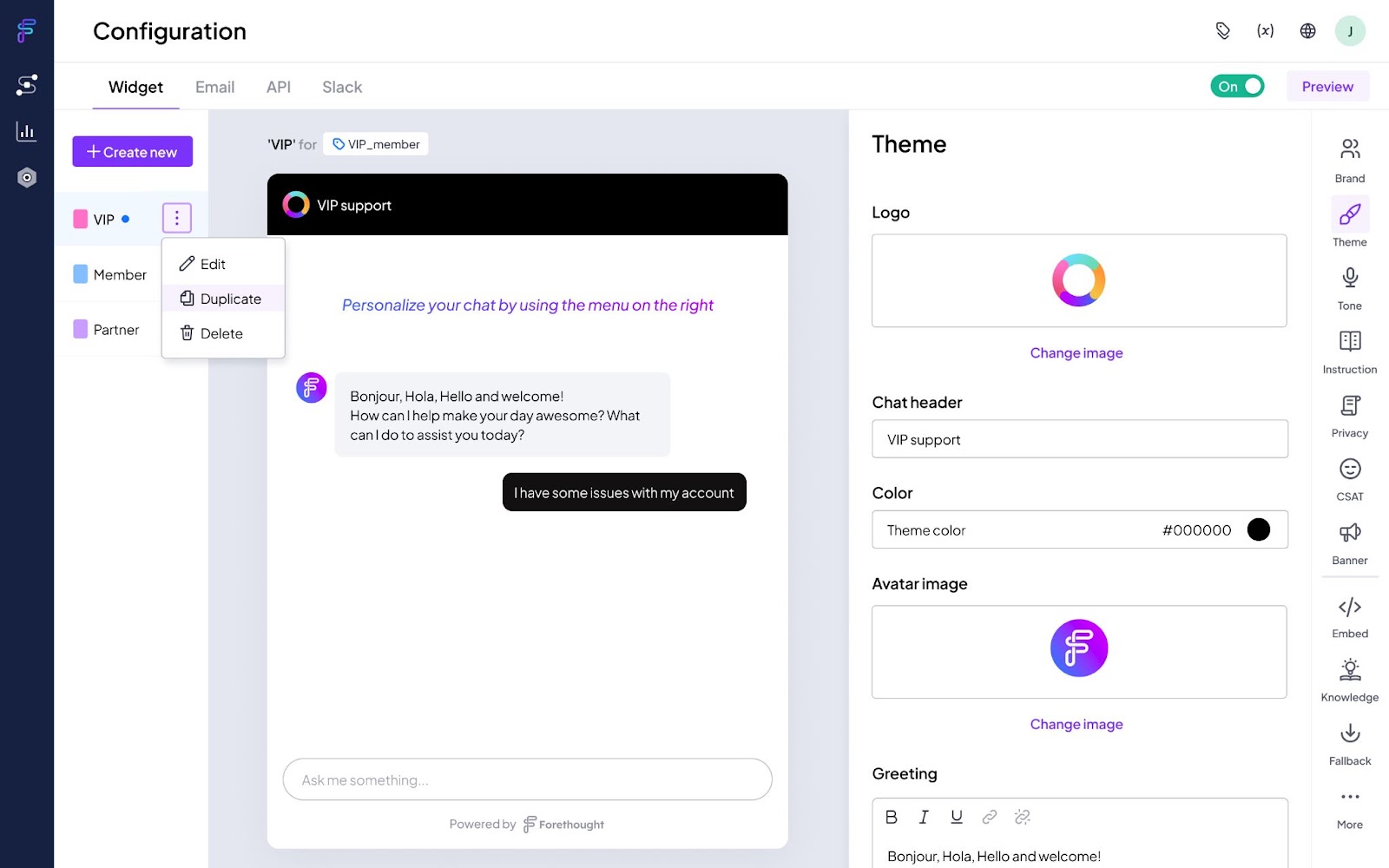 Brand Management is a new Forethought product that represents a paradigm shift in how our customers approach their customer experience. With it, you can launch multiple widgets tailored to different instances of your brand—whether to address personas, products, locations, or subsidiaries. This functionality allows you to do what you do best: put the customer first.
