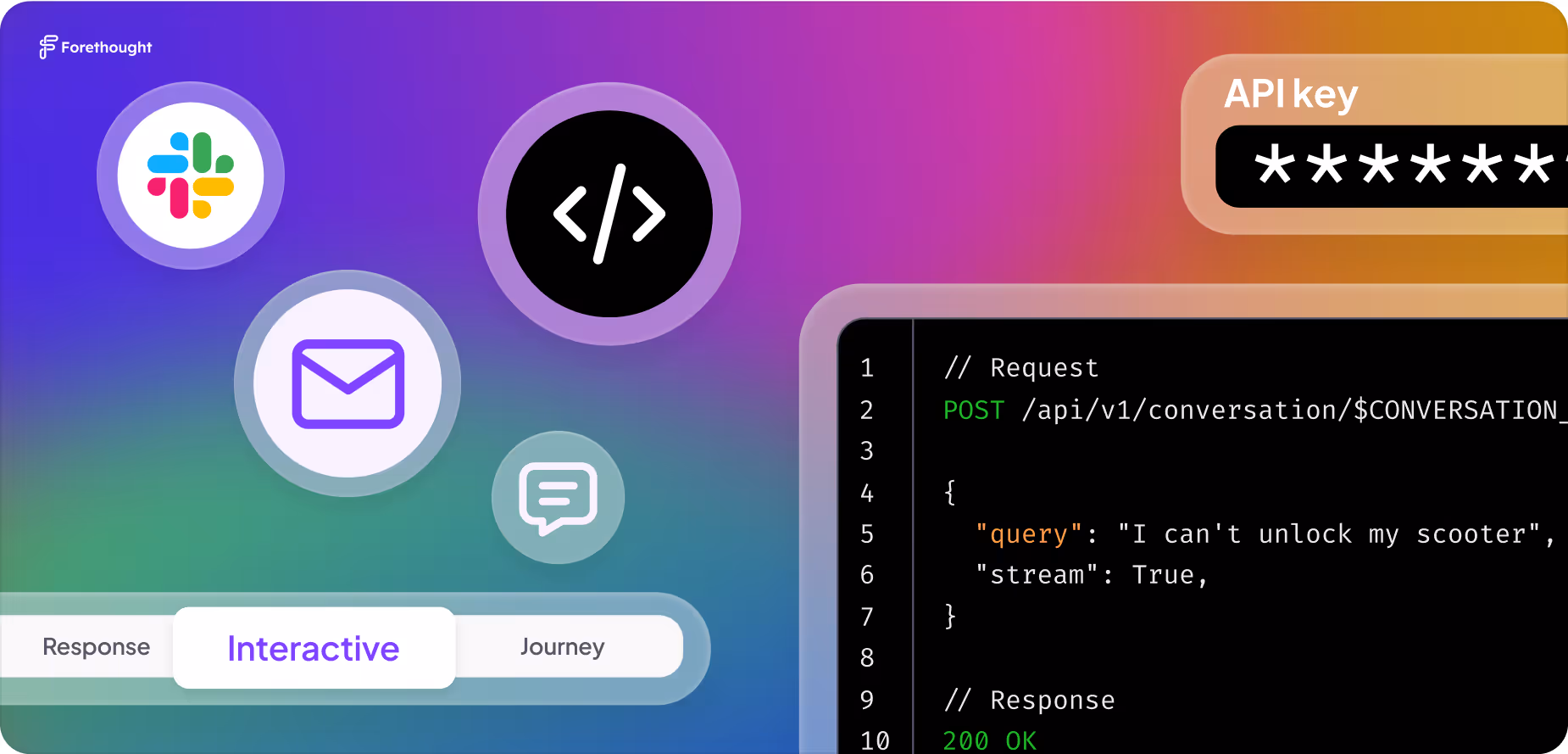 Your customers aren’t just talking to support anymore—and we’ve made sure Forethought can meet them wherever they are. With Solve for Slack, the Solve API, expanded channel support, and Interactive Email that smoothly guides customers from their inbox into the widget experience, you’re no longer limited to traditional help desks. Whether you’re powering internal knowledge-sharing, supporting sales inquiries, or answering compliance questions, Forethought adapts to all the places where people need answers.