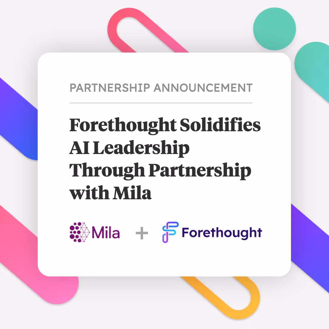 Partnering with Mila is an exciting advancement for Forethought. Mila works with other partners including Microsoft, Google, IBM, and Intel to advance AI research and support a large community of innovators committed to advancing the world of artificial intelligence.