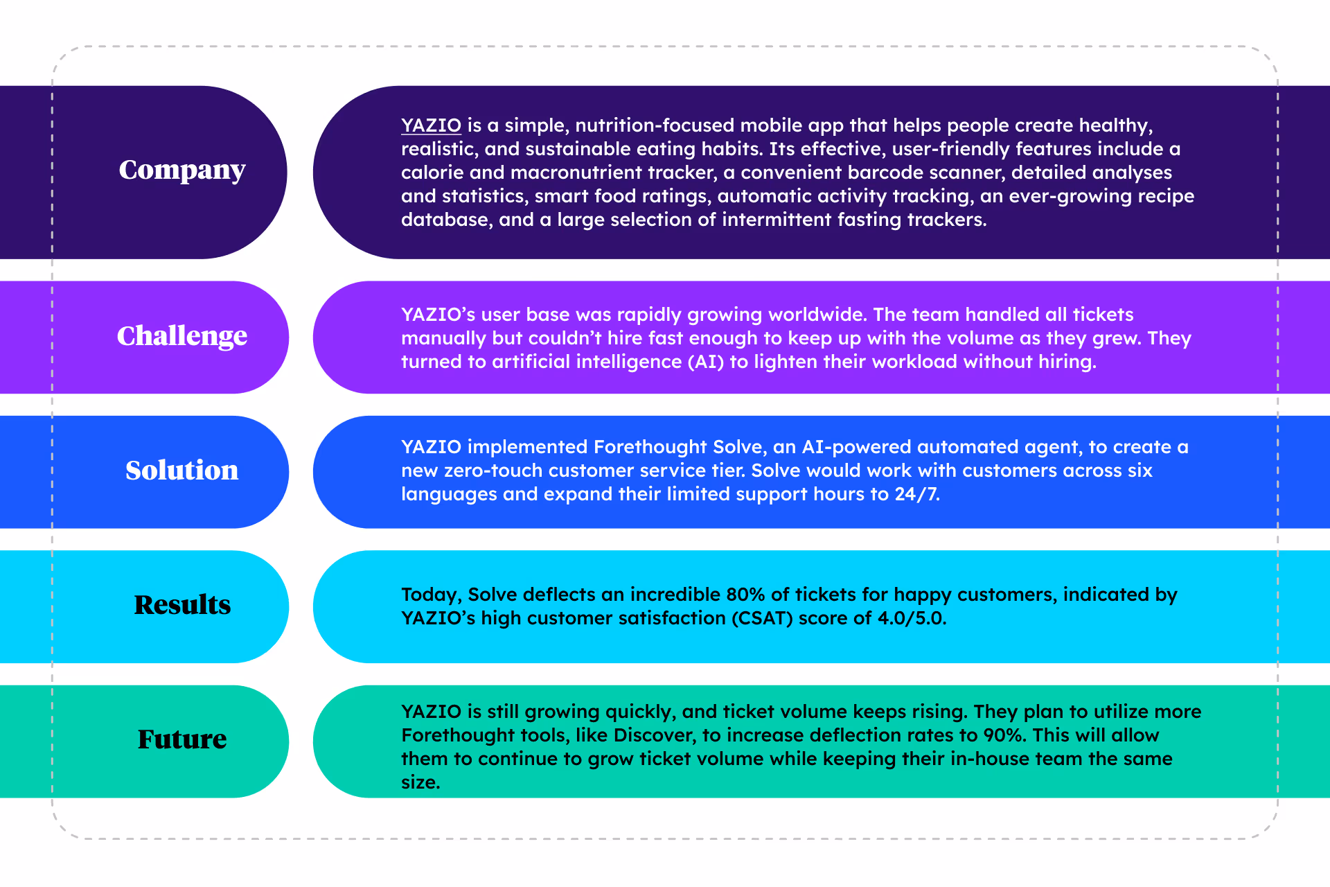Forethought checked all of these boxes and ultimately succeeded at helping YAZIO build their first zero-touch customer tier faster than they expected.