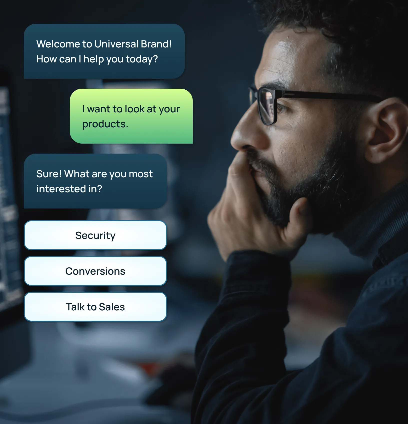 Build the customer experience exactly how you want. Use your preferred frameworks, apply your design system, and fully control the UI without relying on prebuilt widgets or rigid templates.